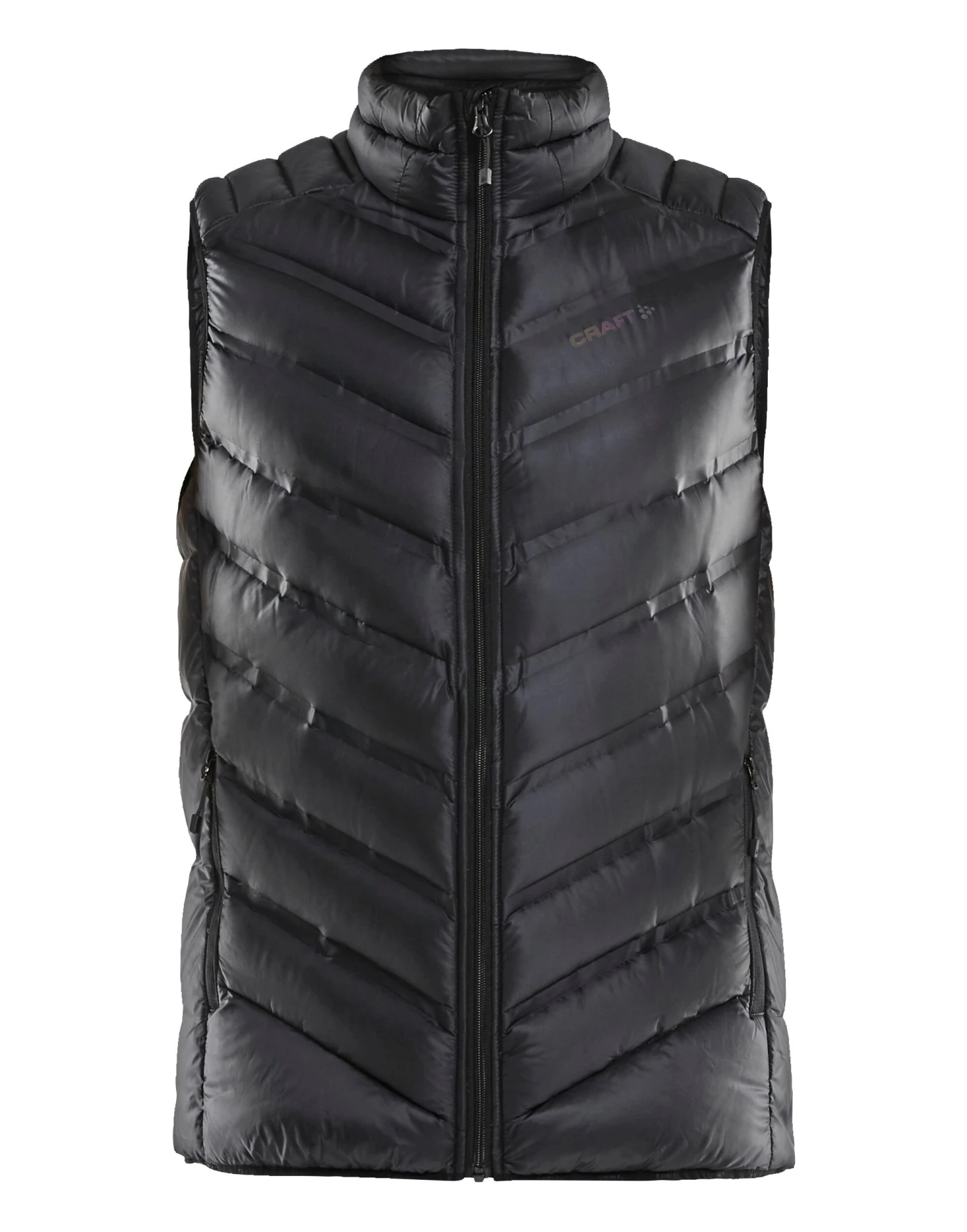 Warm and lightweight vest Excellent insulation Thin, Lightweight down padding Bonded channels High, padded collar Two side pockets with zipper Easy to pack into a bag or backpack Works perfectly both as an outer layer or a mid layer in really cold conditions Craft logo front left chest