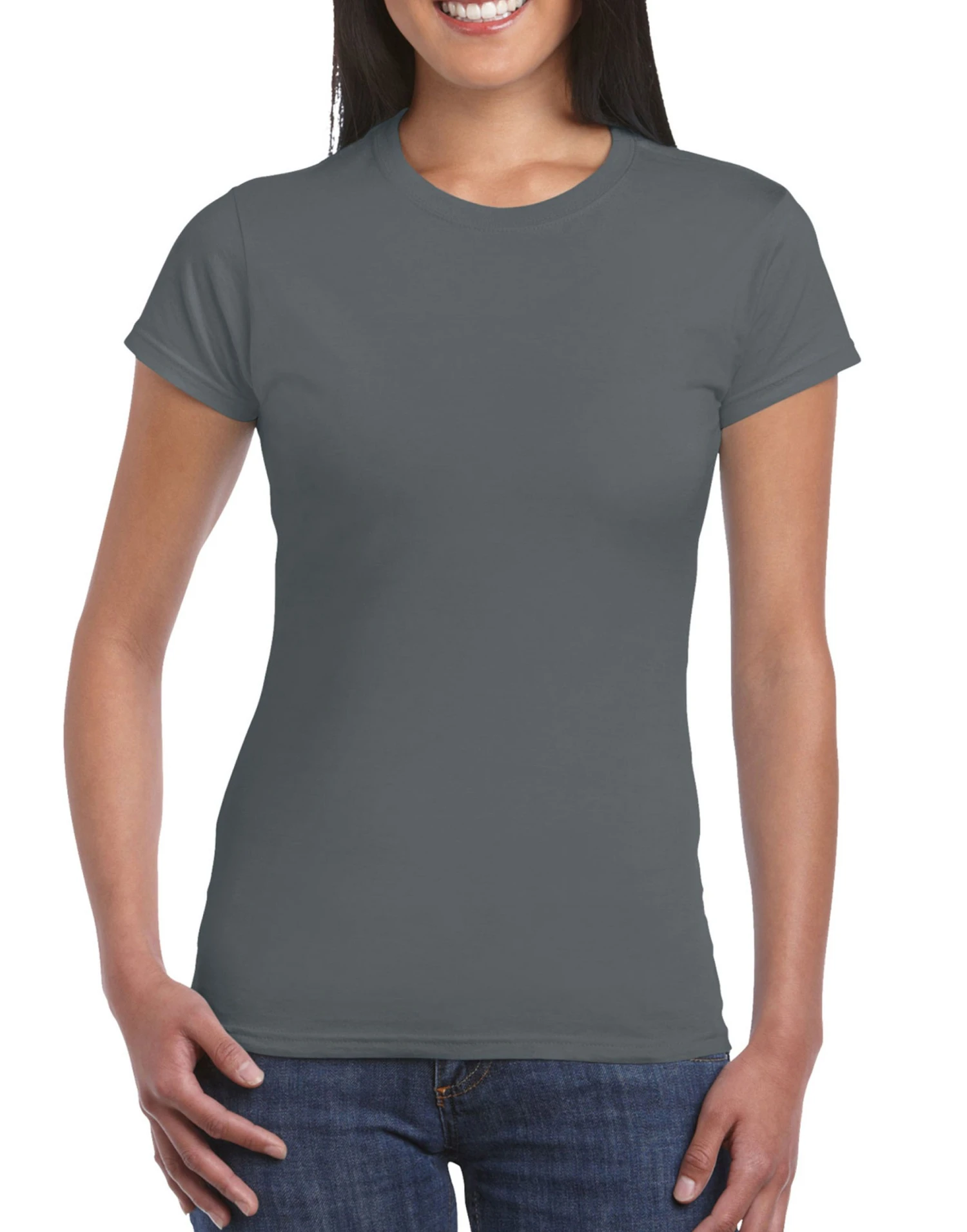 Yarn Count 30/1 Made with our soft ring spun cotton and cotton blends Softstyle features high stitch density fabric that offers a smooth printing surface, ideal for DTG Proud member of the US Cotton Trust Protocol (USCTP) and Better Cotton™ Cotton products from Gildan support more sustainable + ethical cotton farming Soft ring spun fabric feels great against your skin Non-topstitched, narrow width, rib collar Taped neck and shoulders for comfort and durability Semi-fitted, side seamed body High-performing black tear-away label Also available in mens sizes code 64000 and in children sizes code 64000B