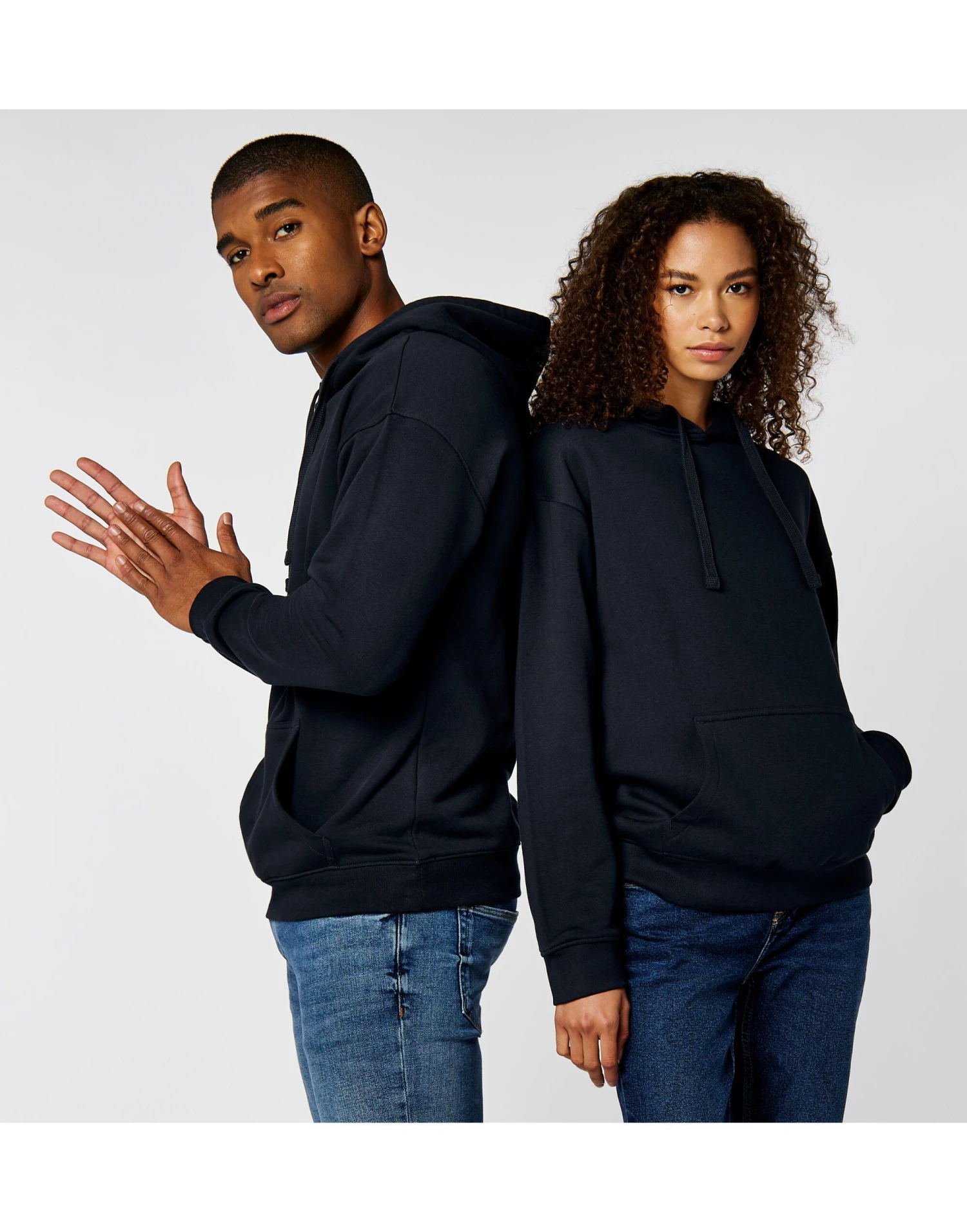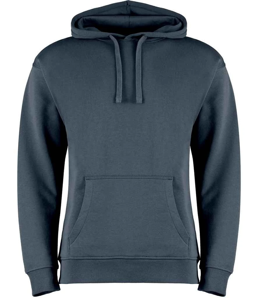 Mens style Self-coloured jersey lined hood Raised hood for enhanced printability Jersey binding to back neck Self-fabric full needle rib double layered cuff and welt Flat lace drawcord running through hood Central kangaroo pocket with double stitching for durability Kustom Kit® tear out neck label