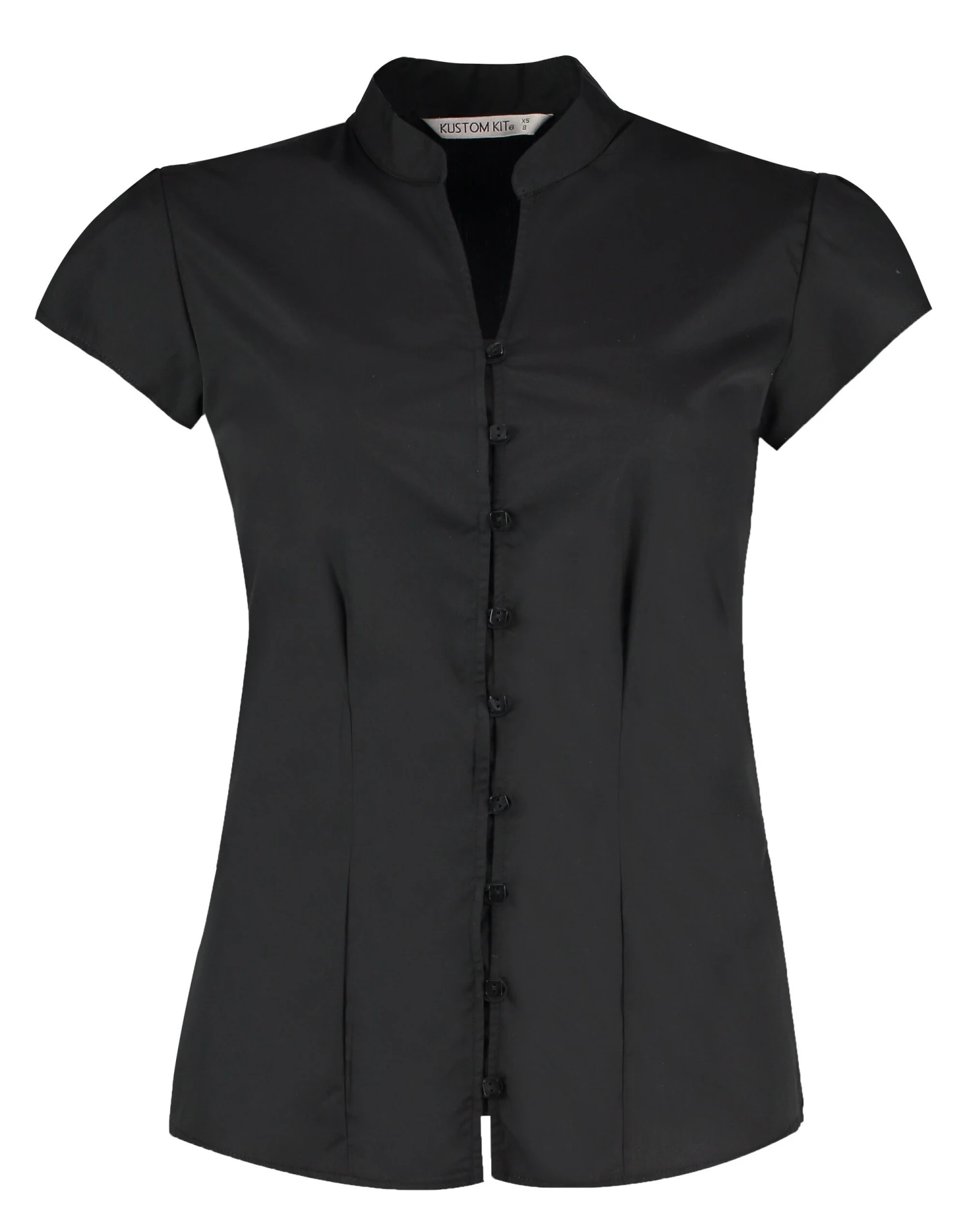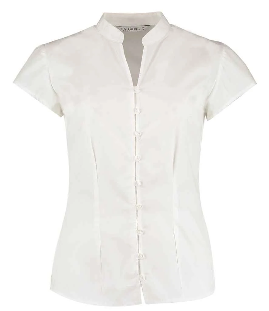 Kustom Kit Tailored Fit Cap Sleeve Mandarin Collar Blouse