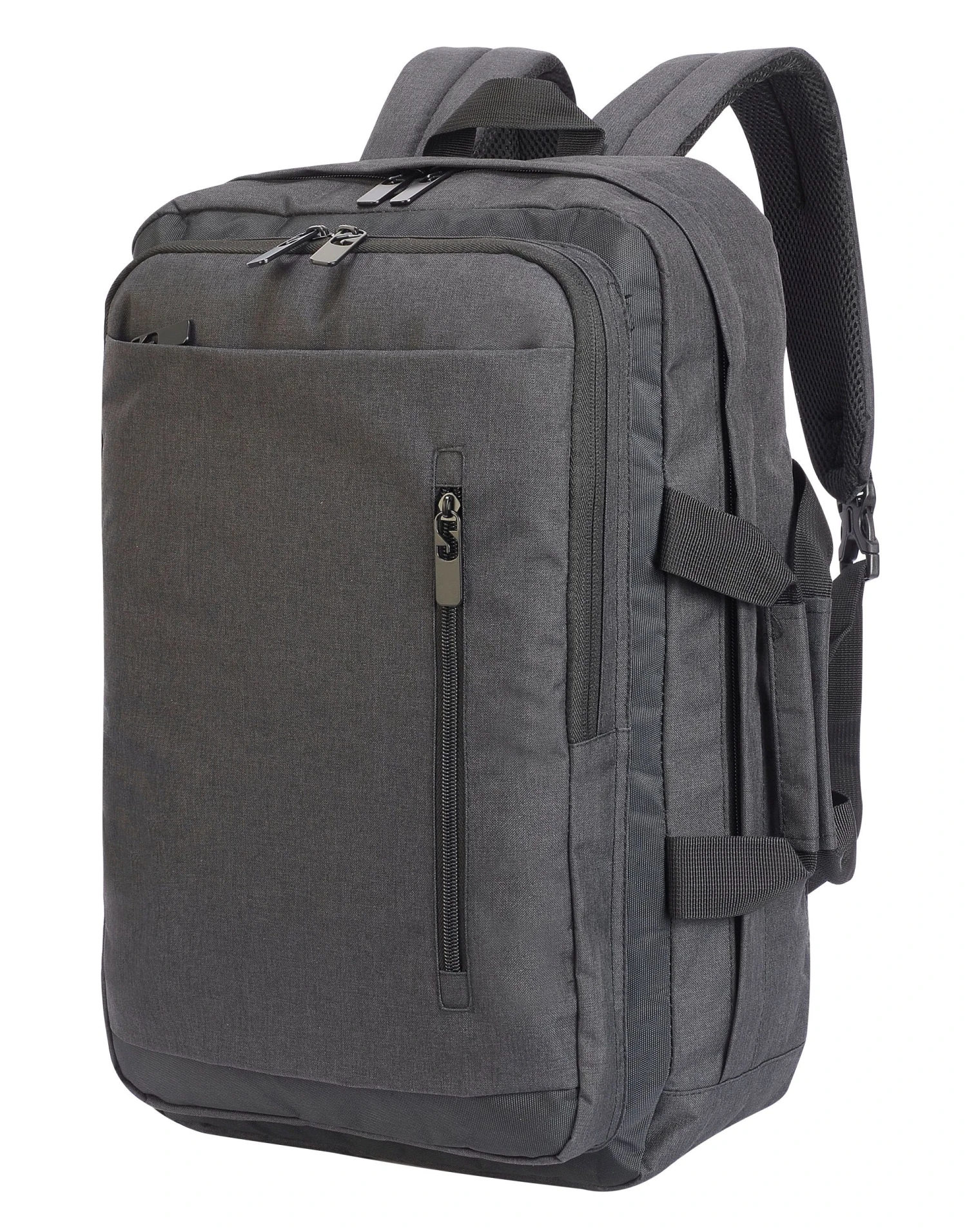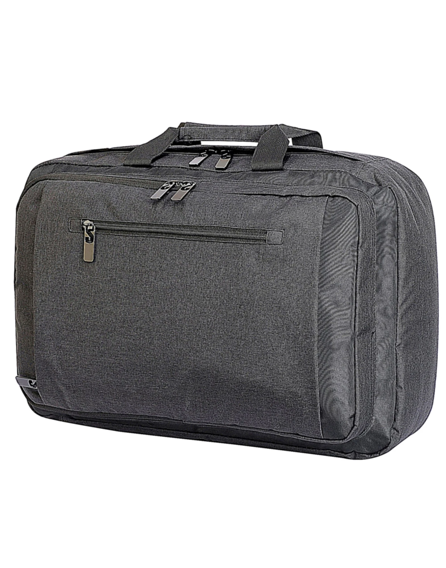 Classic versatile (backpack/messenger) laptop bag Main compartment with pocket suitable for 15.6” laptop A second large zipped compartment with internal organiser Zipped front compartment Zipped pocket on front Mesh padded backing Webbed carrying handles on two sides The bag can be carried over trolley handle Adjustable padded shoulder straps USB connector to power bank Dimensions: 34H X 49W X 17D cm Maximum print area: 12H X12W X 10D cm Capacity: 28 litres Suitable for screen-printing / transfer printing or embroidery.