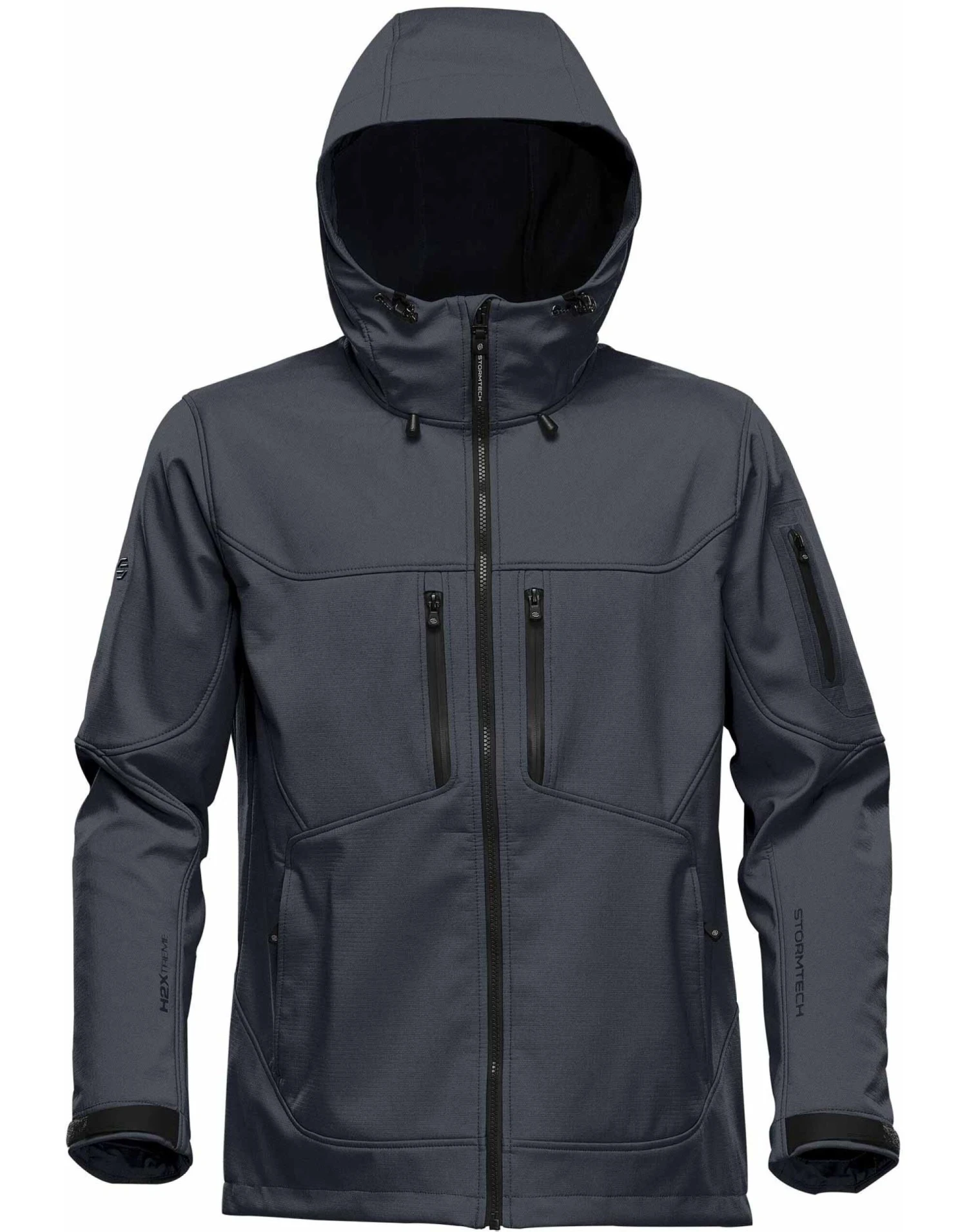 Water Resistance 8,000mm (Charcoal Twill 5,000mm) Breathability 5,000g/m2 STORMTECH H2XTREME® Waterproof / Breathable Outer Shell YKK® AquaGuard® Zippers Mechanical Stretch Full Coverage, Attached Hood Articulated Fit Grid Back Fleece Lining Chest Pockets Ergonomic Hand Pockets Audio Port Decoration Process: Embroidery and Heat Transfer